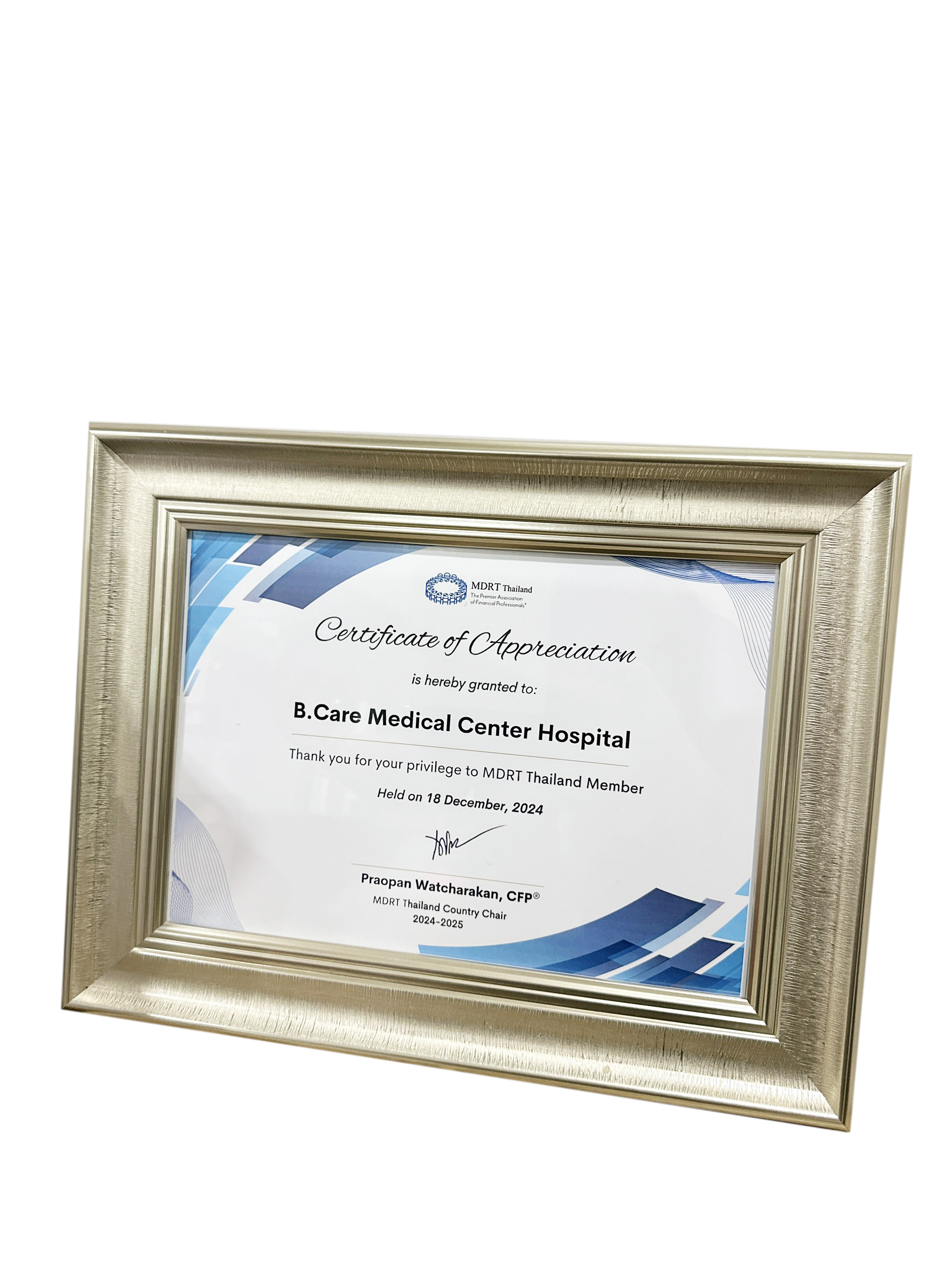 โรงพยาบาล บี.แคร์ เมดิคอลเซ็นเตอร์ ได้รับ Certificate of Appreciation ในงาน MDRT Thailand Appreciation Day 2025