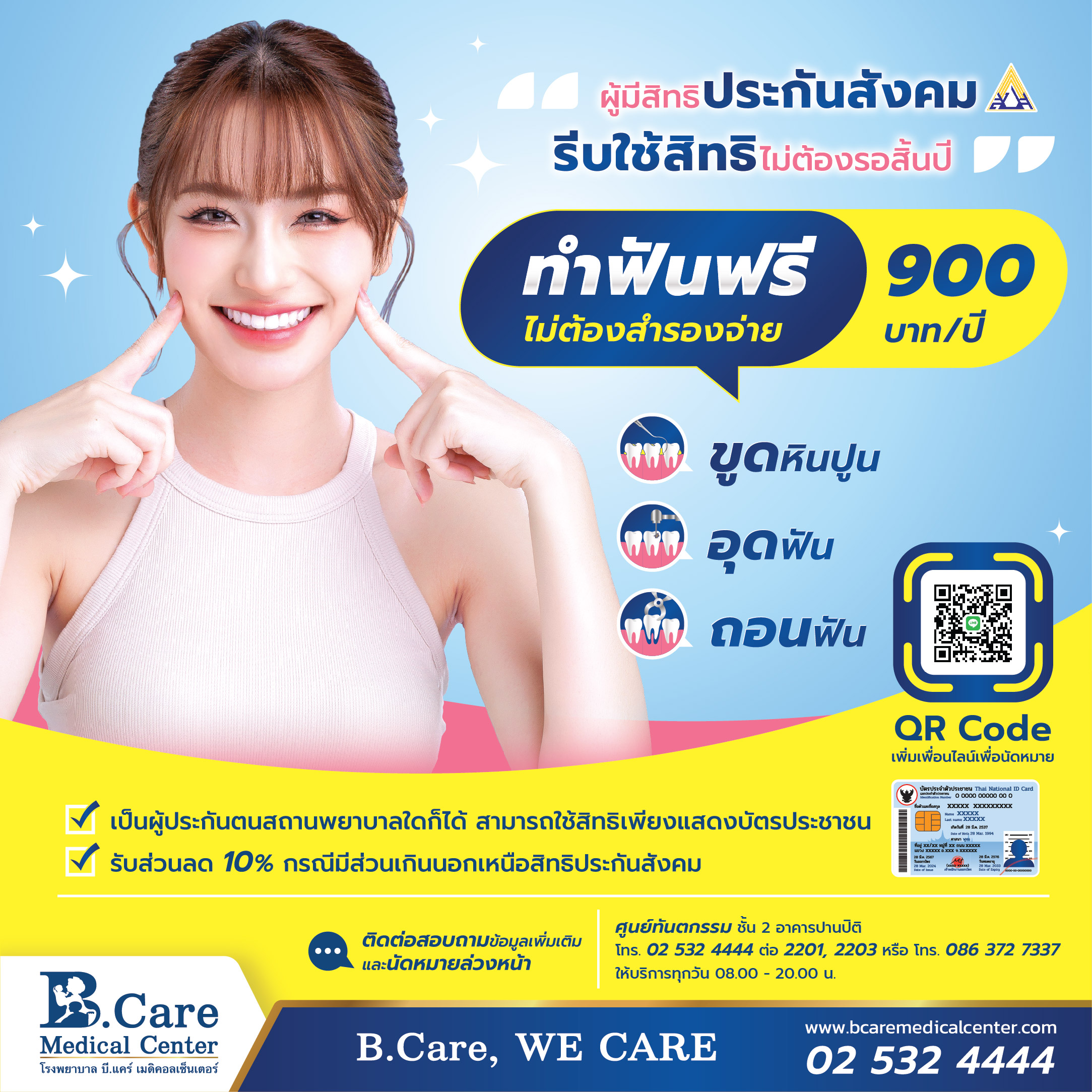 "ผู้มีสิทธิประกันสังคม รีบใช้สิทธิไม่ต้องรอสิ้นปี " ทำฟันฟรี ไม่ต้องสำรองจ่าย 900 บาท/ปี