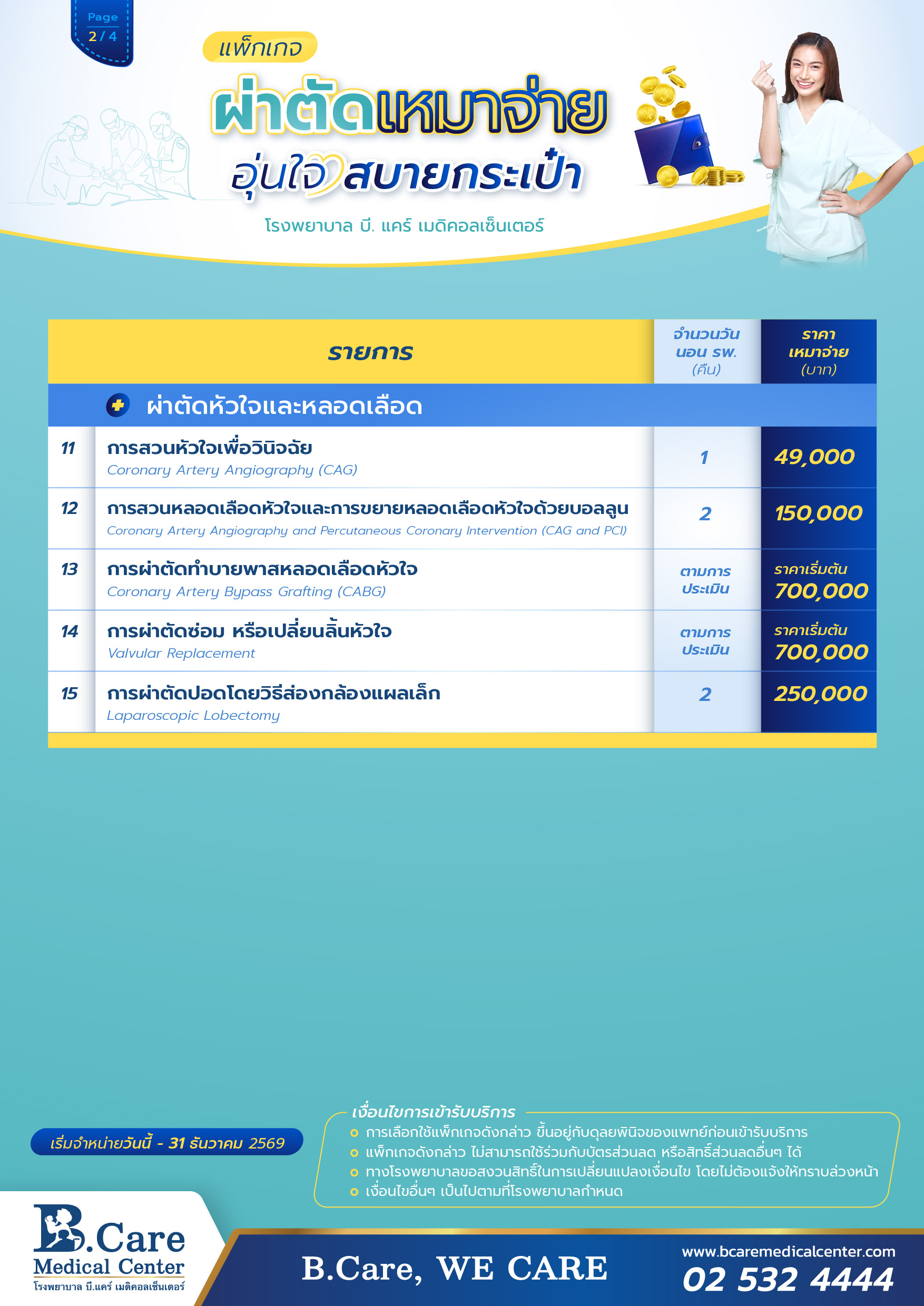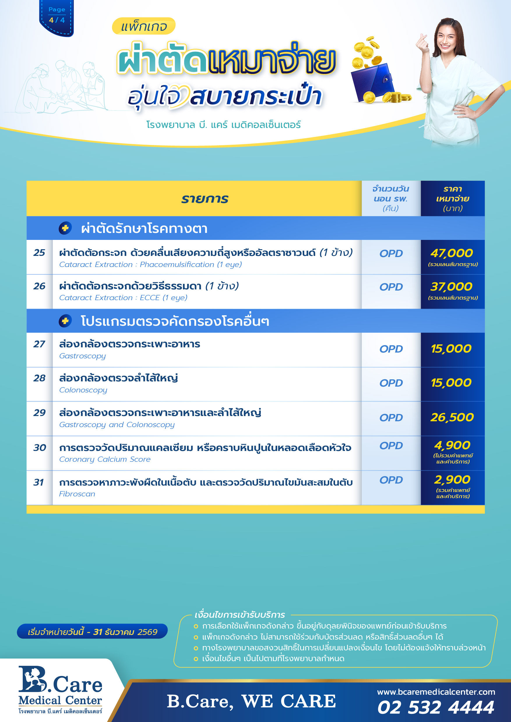 เงื่อนไขอื่นๆ เป็นไปตามที่โรงพยาบาลกำหนด