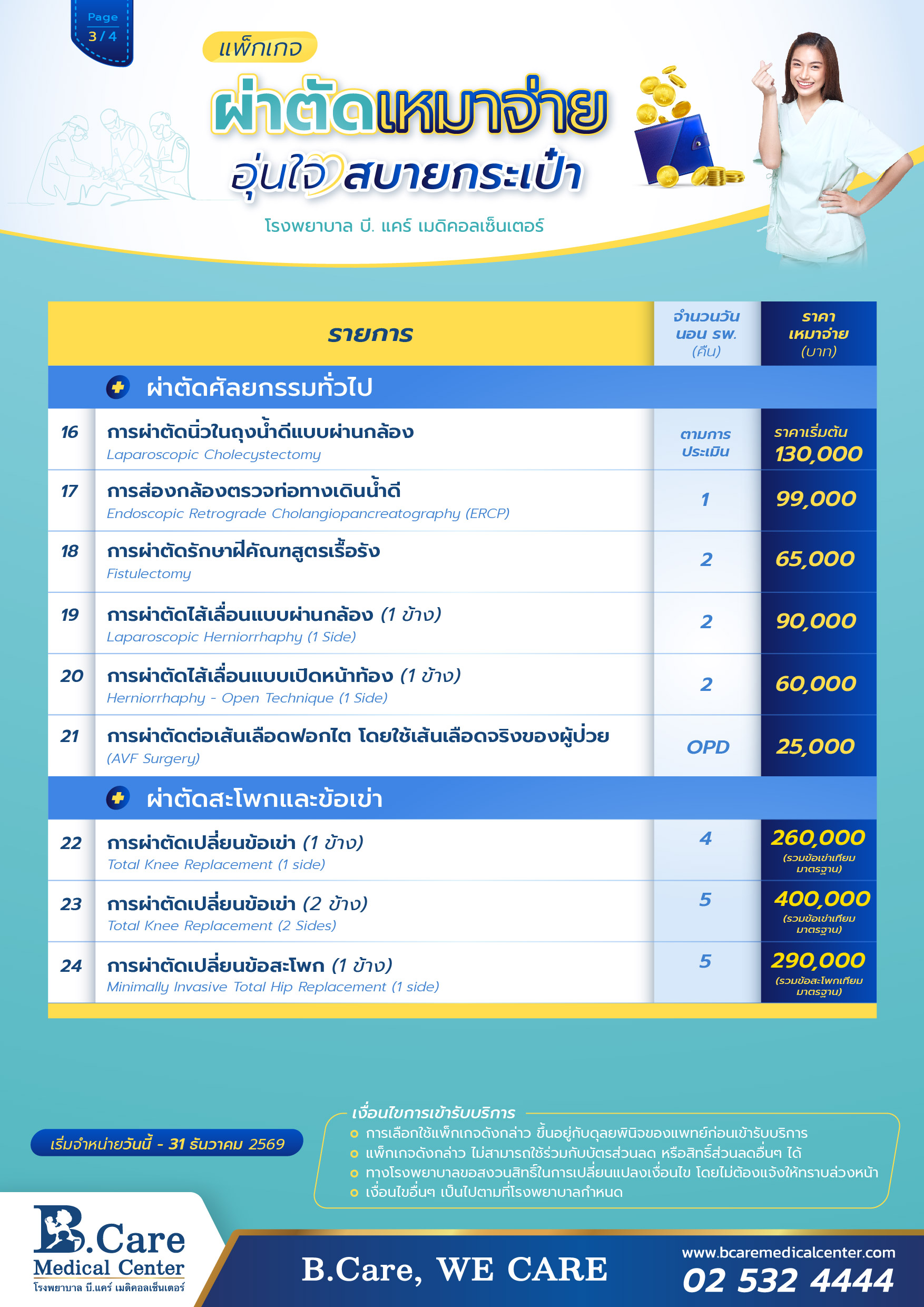 แพ็กเกจผ่าตัดเหมาจ่าย อุ่นใจ สบายกระเป๋า
