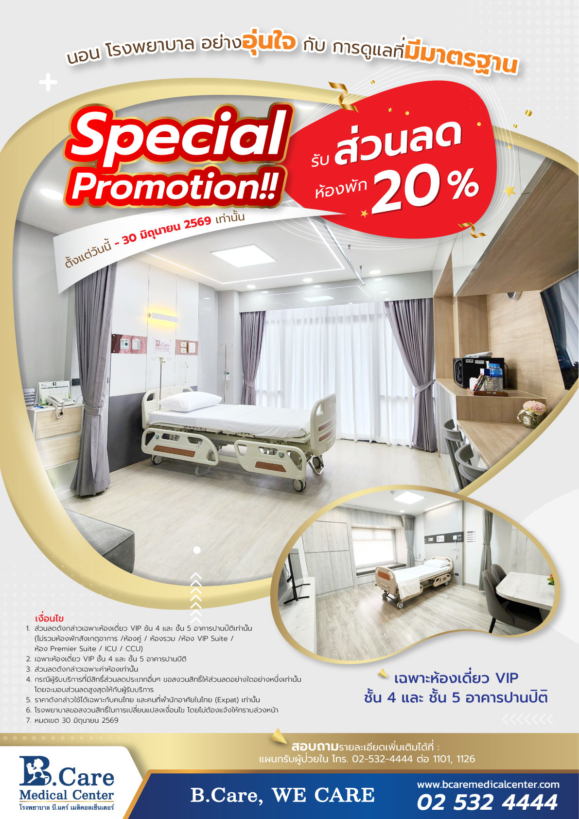 คลิก ดูรายละเอียดและห้องพักเพิ่มเติมที่ร่วมรายการ คือ ห้องเดี่ยว Premier Room และ VIP Room
