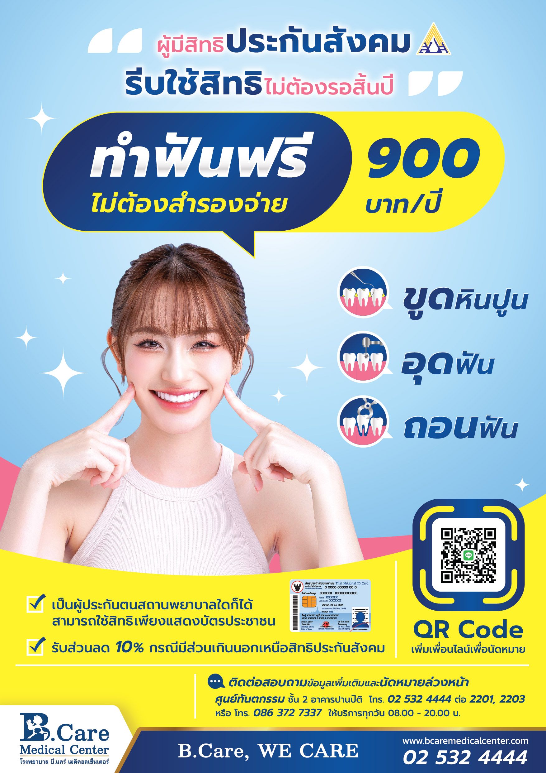 "ผู้มีสิทธิประกันสังคม รีบใช้สิทธิไม่ต้องรอสิ้นปี " ทำฟันฟรี ไม่ต้องสำรองจ่าย 900 บาท/ปี