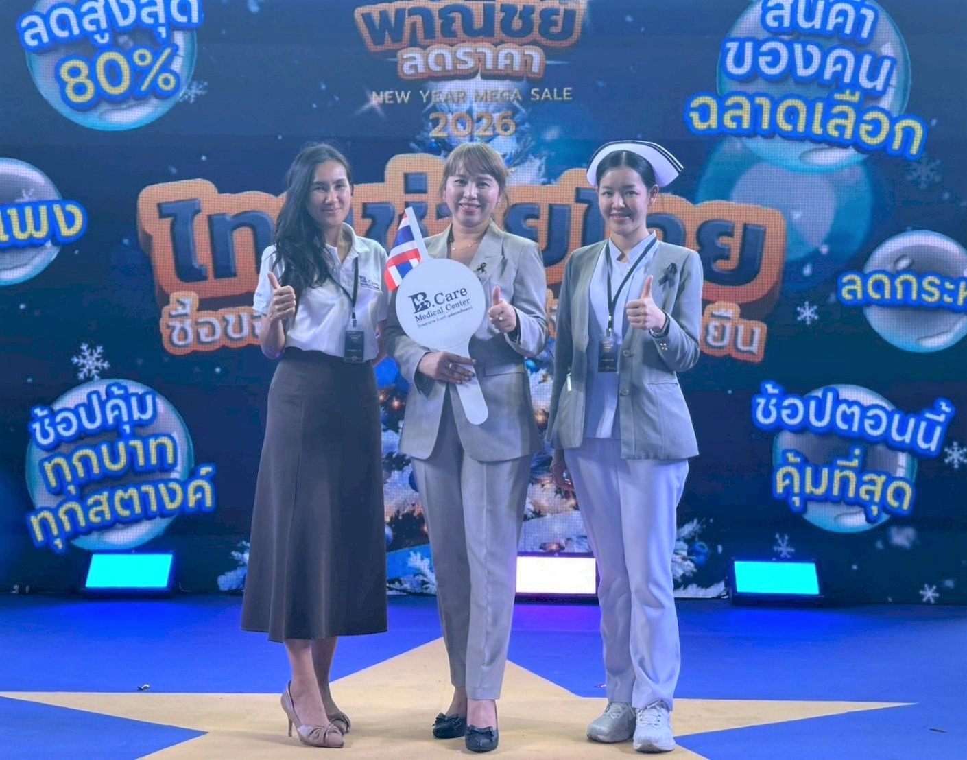 23 ธ.ค. 2568 - โรงพยาบาล บี.แคร์ เมดิคอลเซ็นเตอร์ เข้าร่วมออกบูธในงาน “พาณิชย์ลดราคา New Year Mega Sale 2026” ไทยช่วยไทย ซื้อของไทย เศรษฐกิจไทยยั่งยืน พร้อมร่วมงานแถลงข่าวและพิธีเปิดงาน โดยมี นายวุฒิไกร ลีวีระพันธุ์ ปลัดกระทรวงพาณิชย์ นายวิทยากร มณีเนตร อธิบดีกรมการค้าภายใน และ ผู้บริหาร พันธมิตร องค์กรต่างๆ ที่เข้าร่วมโครงการร่วมพิธีเปิดงาน