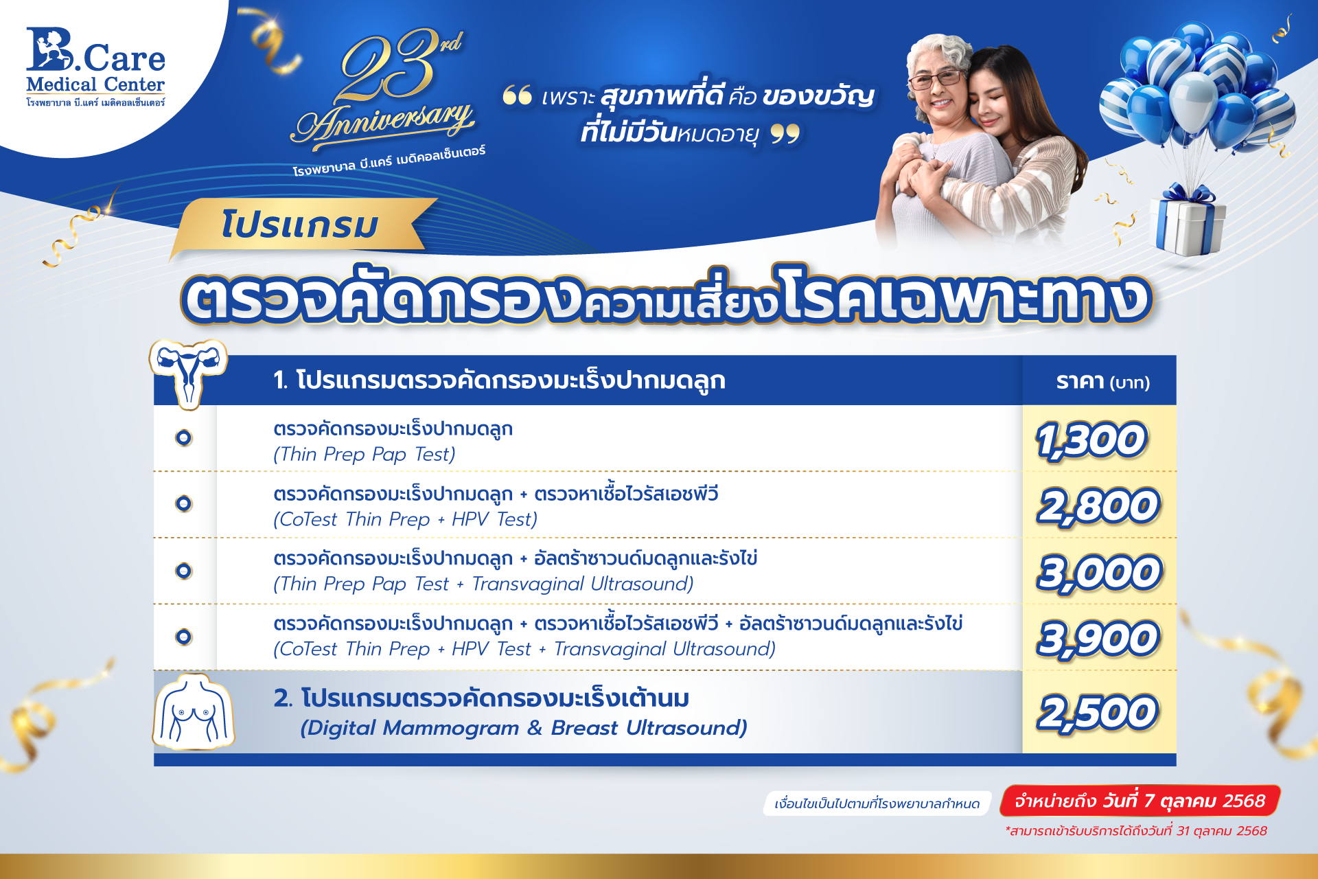 - สามารถเข้ารับบริการได้ถึงวันที่ 31 ตุลาคม 2568