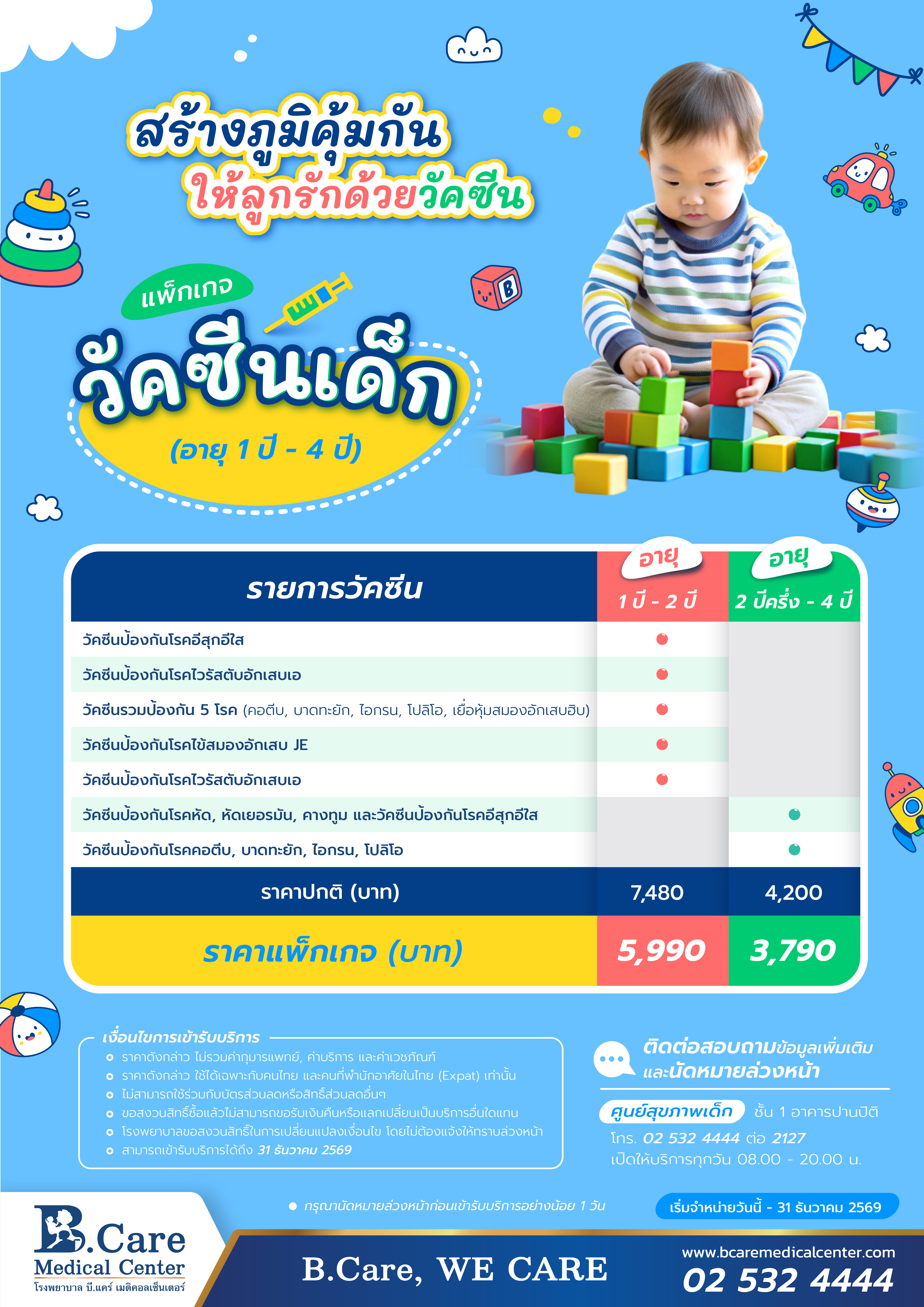 - ราคาดังกล่าว ไม่รวมค่ากุมารแพทย์, ค่าบริการ และค่าเวชภัณฑ์