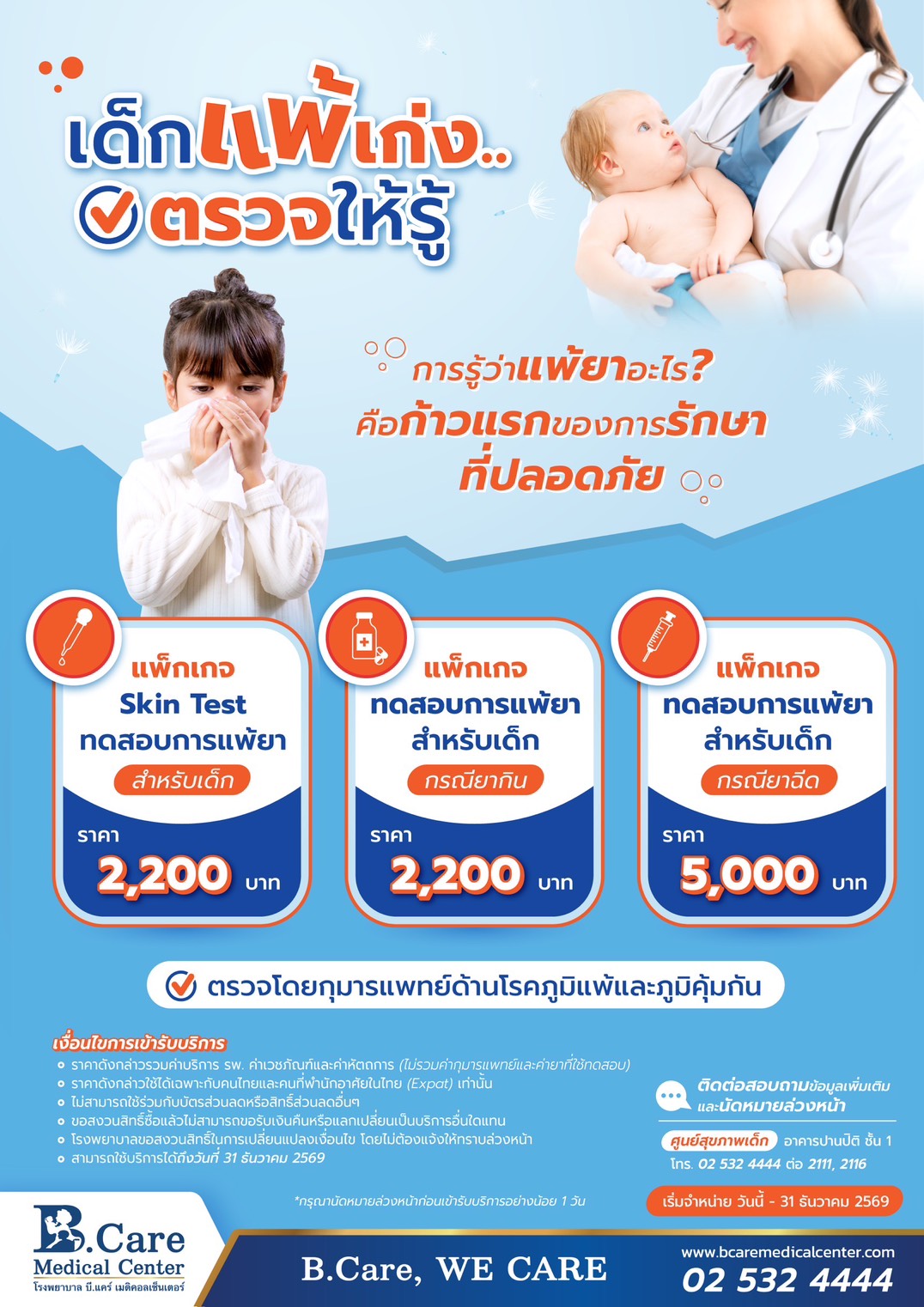 - ราคาดังกล่าวรวมค่าบริการ รพ. ค่าเวชภัณฑ์และค่าหัตถการ (ไม่รวมค่ากุมารแพทย์และค่ายาที่ใช้ทดสอบ)